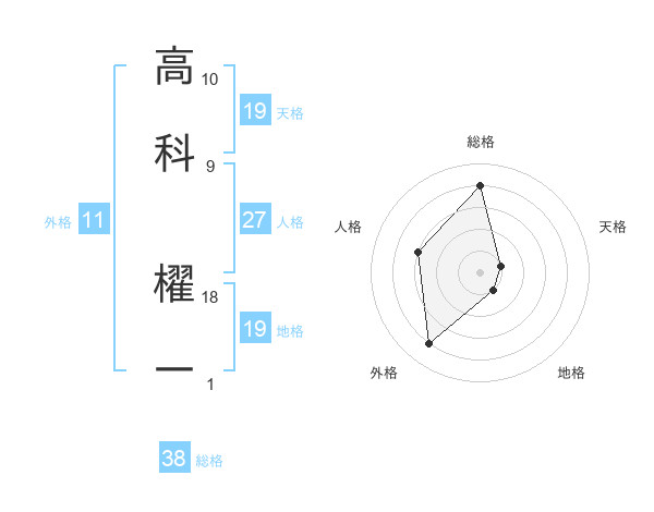 高科 櫂一さんを姓名の画数から五運を鑑定