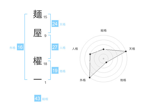 麺屋 櫂一さんの天格は24画の5点!