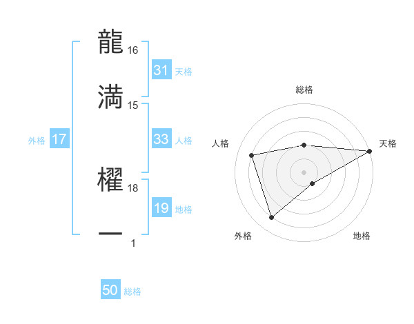 龍満 櫂一さんを姓名の画数から五運を鑑定