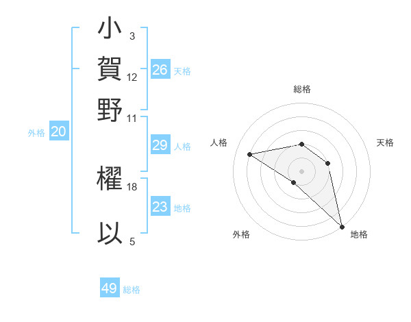 小賀野 櫂以さんを姓名の画数から五運を鑑定
