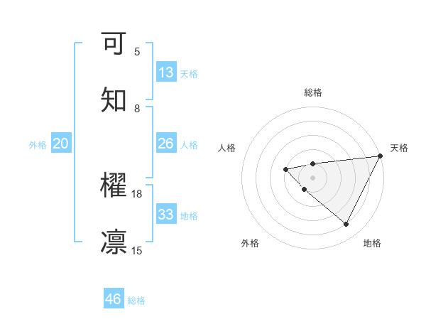 可知 櫂凛さんの天格は13画の5点!