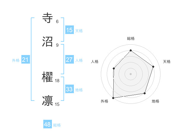 寺沼 櫂凛さんの外格は21画の5点!