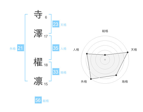 寺澤 櫂凛さんの天格は23画の5点!