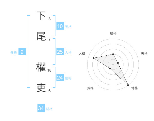 下尾 櫂吏さんの総格は34画の2点!
