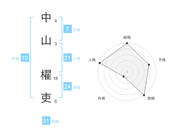 中山 櫂吏さんの総格は31画の5点