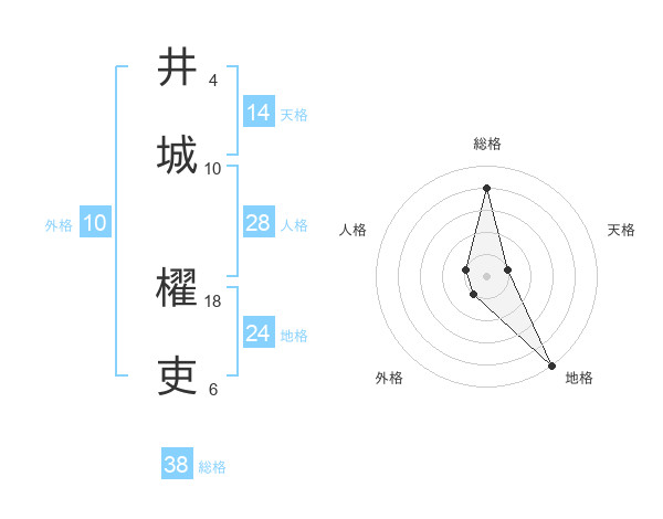 井城 櫂吏さんを姓名の画数から五運を鑑定