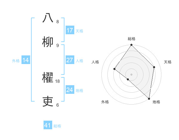 八柳 櫂吏さんを姓名の画数から五運を鑑定