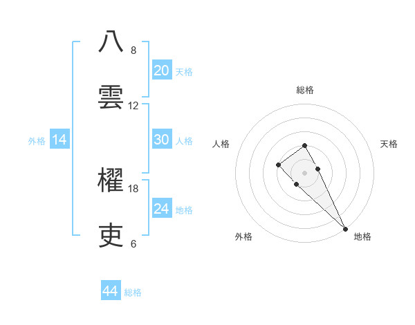 八雲 櫂吏さんの総格は44画の2点!