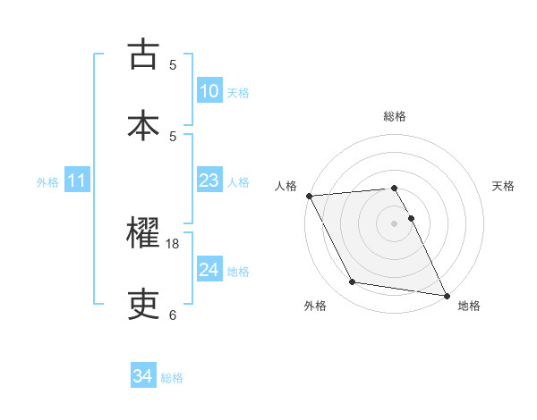 古本 櫂吏さんを姓名の画数から五運を鑑定