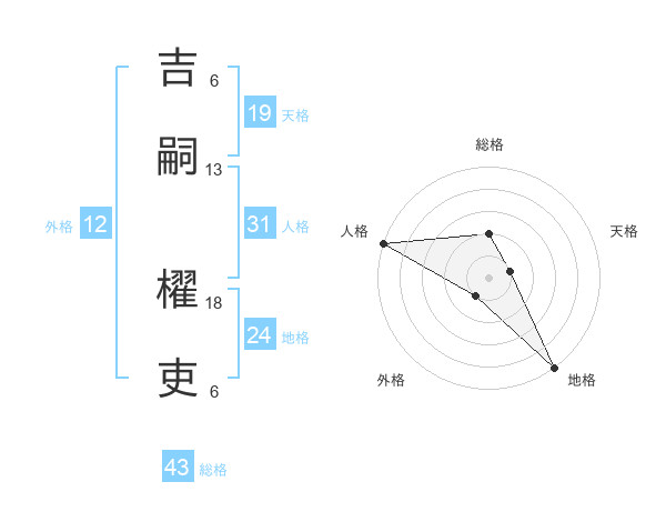 吉嗣 櫂吏さんを姓名の画数から五運を鑑定