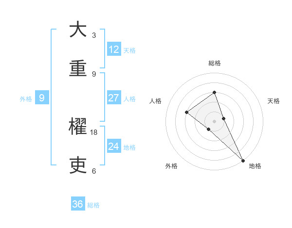 大重 櫂吏さんを姓名の画数から五運を鑑定