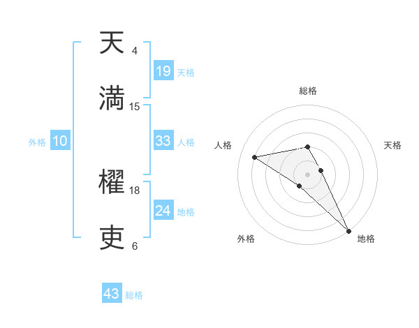 天満 櫂吏さんを姓名の画数から五運を鑑定