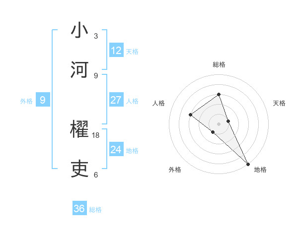 小河 櫂吏さんの総格は36画の3点!