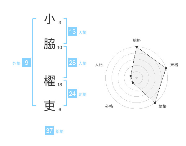 小脇 櫂吏さんの総格は37画の5点!