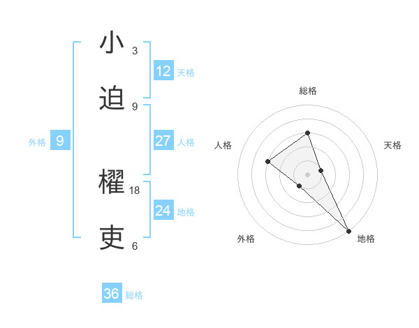 小迫 櫂吏さんの総格は36画の3点!
