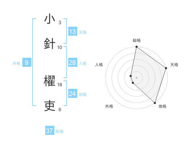 小針 櫂吏さんを姓名の画数から五運を鑑定