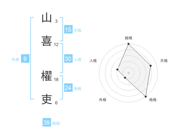 山喜 櫂吏さんを姓名の画数から五運を鑑定