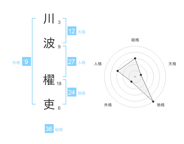 川波 櫂吏さんの総格は36画の3点!