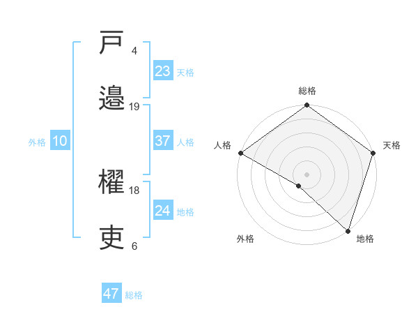 戸邉 櫂吏さんの総格は47画の5点!