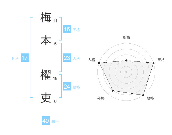 梅本 櫂吏さんの天格は16画の5点!