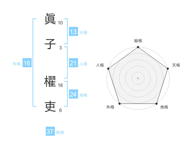 眞子 櫂吏さんの総格は37画の5点!