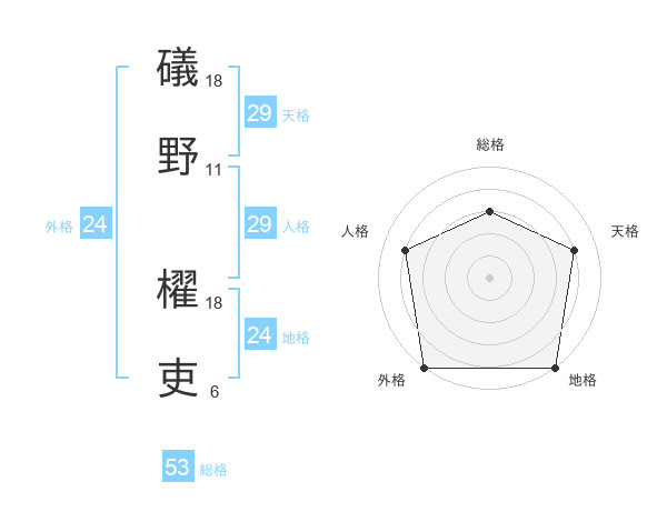 礒野 櫂吏さんの天格は29画の4点!