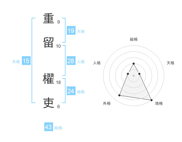 重留 櫂吏さんを姓名の画数から五運を鑑定