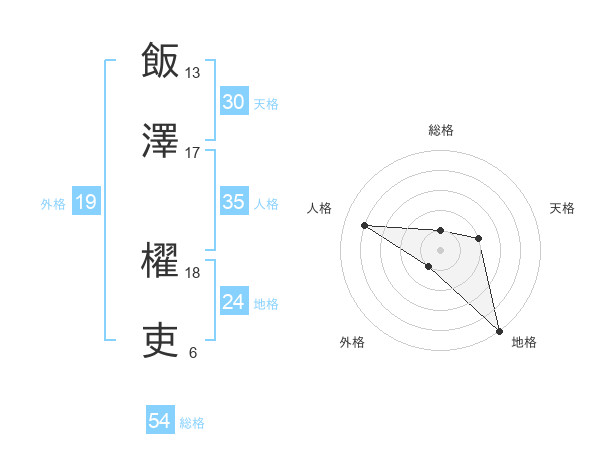 飯澤 櫂吏さんの天格は30画の2点!