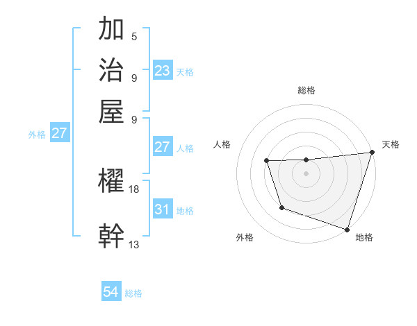 加治屋 櫂幹さんを姓名の画数から五運を鑑定