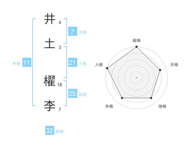 井土 櫂李さんの地格は25画の4点!