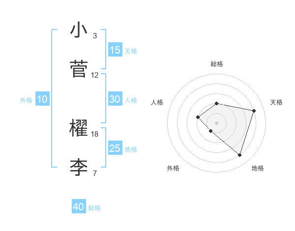小菅 櫂李さんの天格は15画の4点!