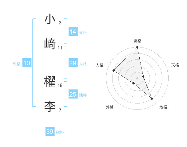 小﨑 櫂李さんの総格は39画の5点!