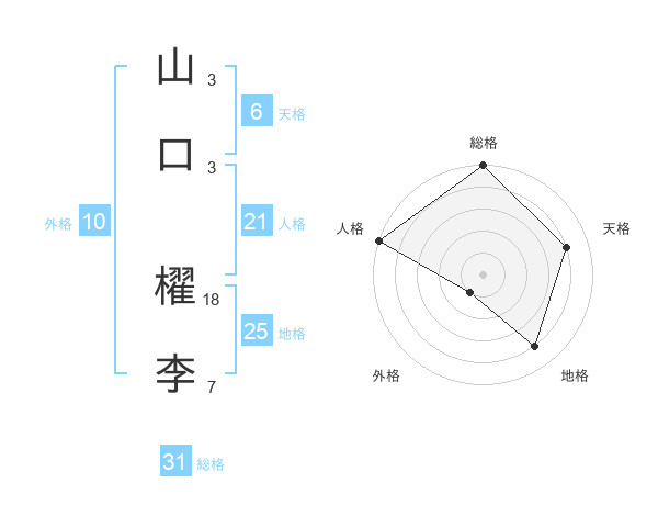 山口 櫂李さんを姓名の画数から五運を鑑定