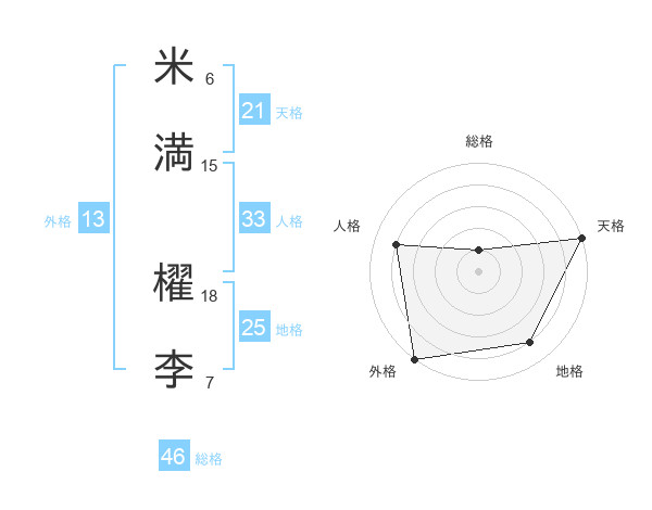 米満 櫂李さんの天格は21画の5点!