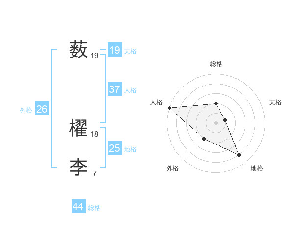 薮 櫂李さんの天格は19画の1点!