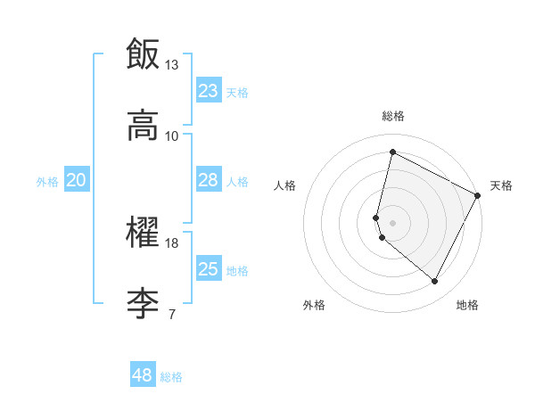 飯高 櫂李さんの天格は23画の5点!
