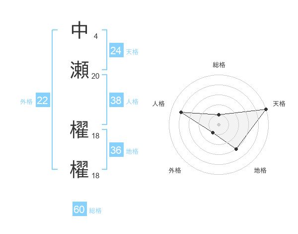中瀬 櫂櫂さんの天格は24画の5点!