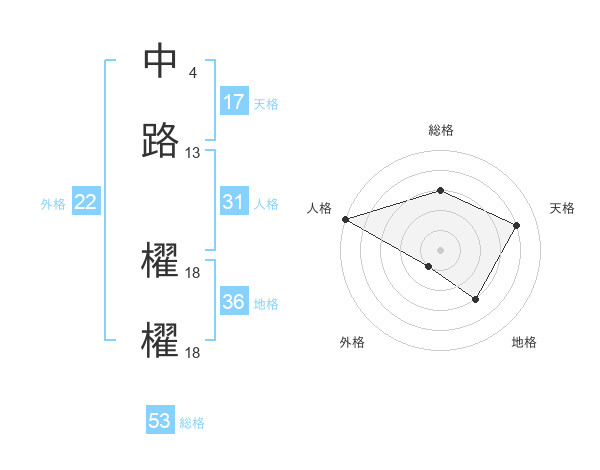 中路 櫂櫂さんの総格は53画の3点!
