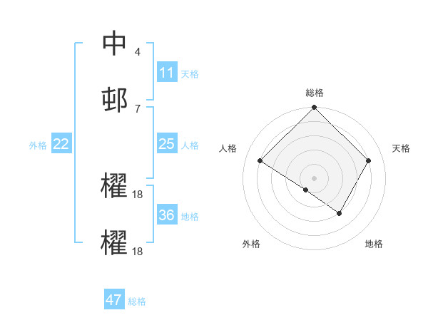 中邨 櫂櫂さんを姓名の画数から五運を鑑定