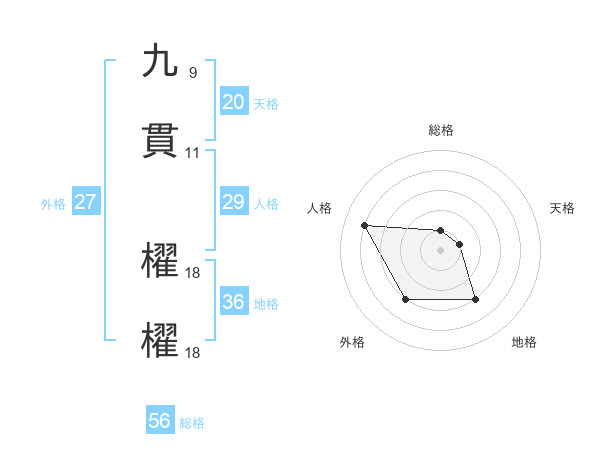 九貫 櫂櫂さんを姓名の画数から五運を鑑定