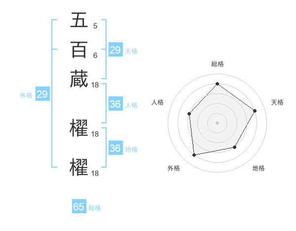 五百蔵 櫂櫂さんの総格は65画の4点!
