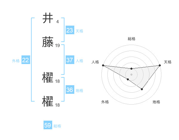 井藤 櫂櫂さんの総格は59画の1点!