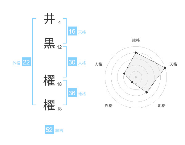 井黒 櫂櫂さんを姓名の画数から五運を鑑定