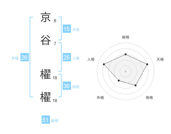 京谷 櫂櫂さんの総格は51画の3点!