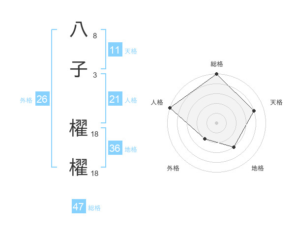 八子 櫂櫂さんを姓名の画数から五運を鑑定