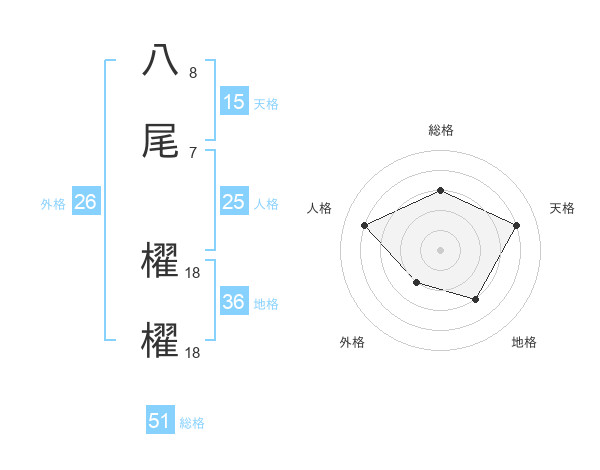 八尾 櫂櫂さんの総格は51画の3点!