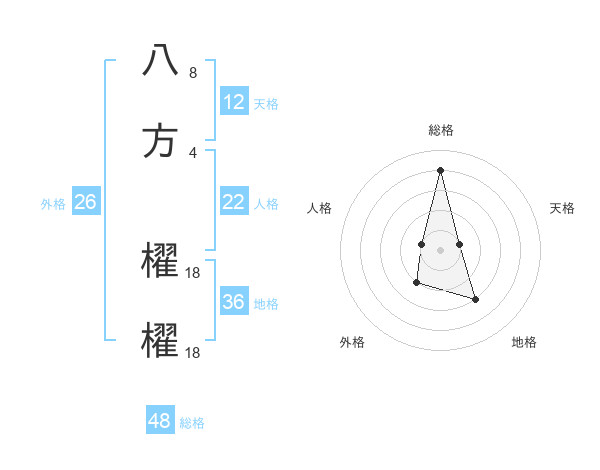 八方 櫂櫂さんの総格は48画の4点!