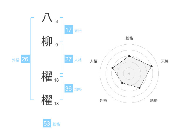 八柳 櫂櫂さんを姓名の画数から五運を鑑定