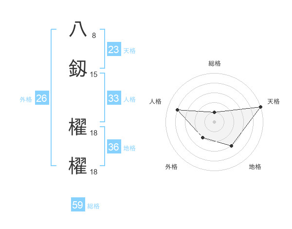 八釼 櫂櫂さんを姓名の画数から五運を鑑定