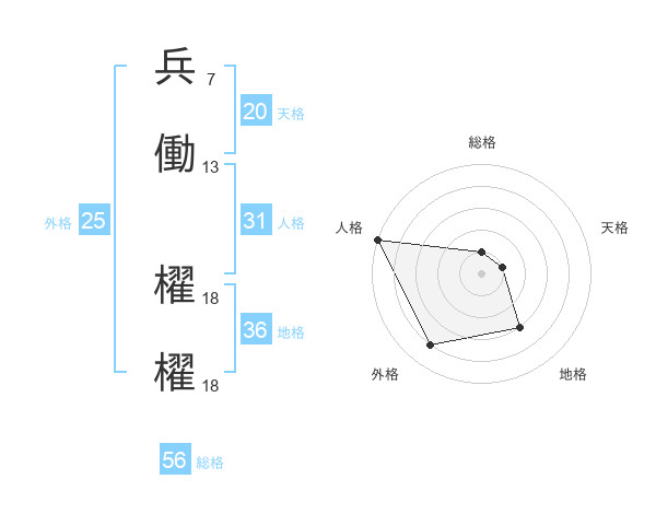 兵働 櫂櫂さんを姓名の画数から五運を鑑定